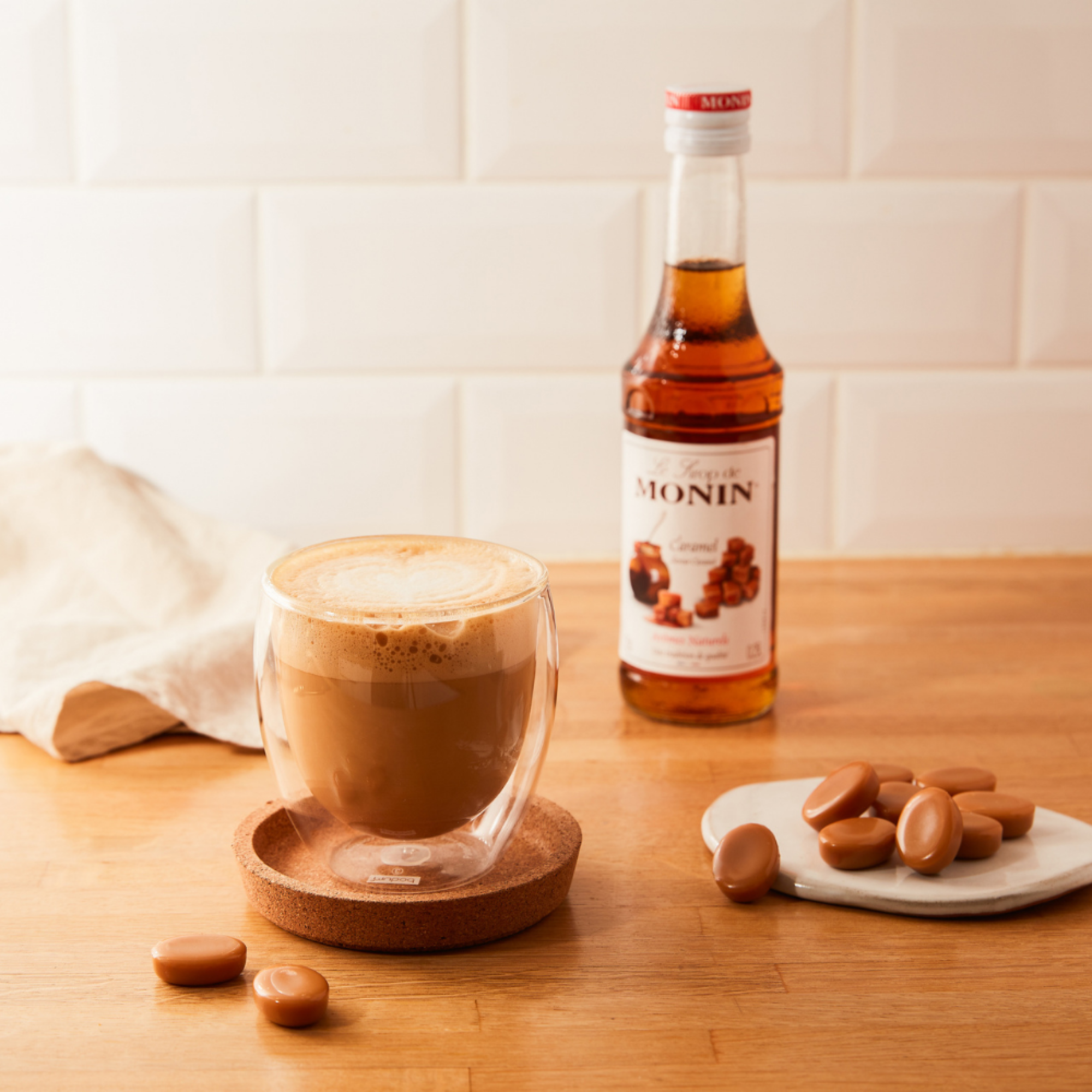 Karmel oznacza po prostu skarmelizowany cukier, tradycyjnie wytwarzany poprzez topienie cukru w naczyniu z wodą. Bogaty smak i kolor karmelu wynika z procesu ogrzewania i topienia cukru. Karmel jest doceniany jako główny smak oraz używany również w harmonii z innymi smakami. Syrop karmelowy firmy MONIN ma nieskończoną ilość zastosowań. Smak karmelu jest stosowany w szczególności w napojach kawowych, koktajlach, deserach oraz w innych kulinarnych potrawach.