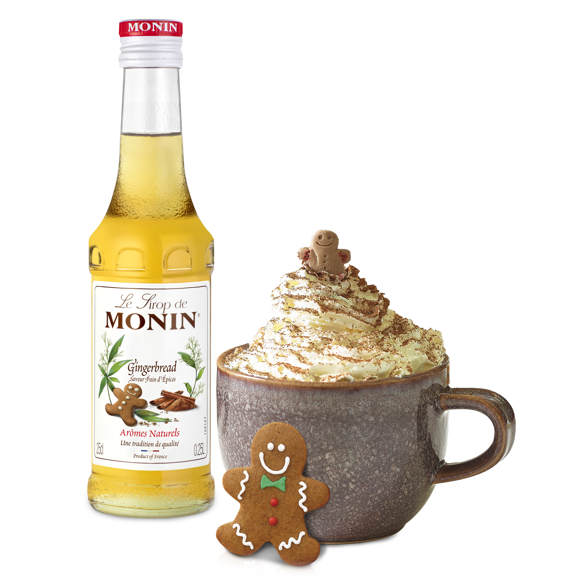 W Ameryce Północnej słowo piernik wiąże się nie tylko z ciasteczkami piernikowymi, ale także z domkiem oraz ludzikiem z piernika! Wszystkie te wyroby z piernika dają w zimie uczucie ciepła i przytulności. Dodanie do napojów smaku piernika firmy MONIN oddaje przytulne uczucie ciepła przy kominku! Smak ten stanowi doskonałą, zrównoważoną mieszaninę imbiru i cynamonu ze smakiem prawdziwego piernika. Oprócz sezonu zimowego można go stosować przez cały rok w milkshake’ach oraz zimnych i mrożonych kawach.