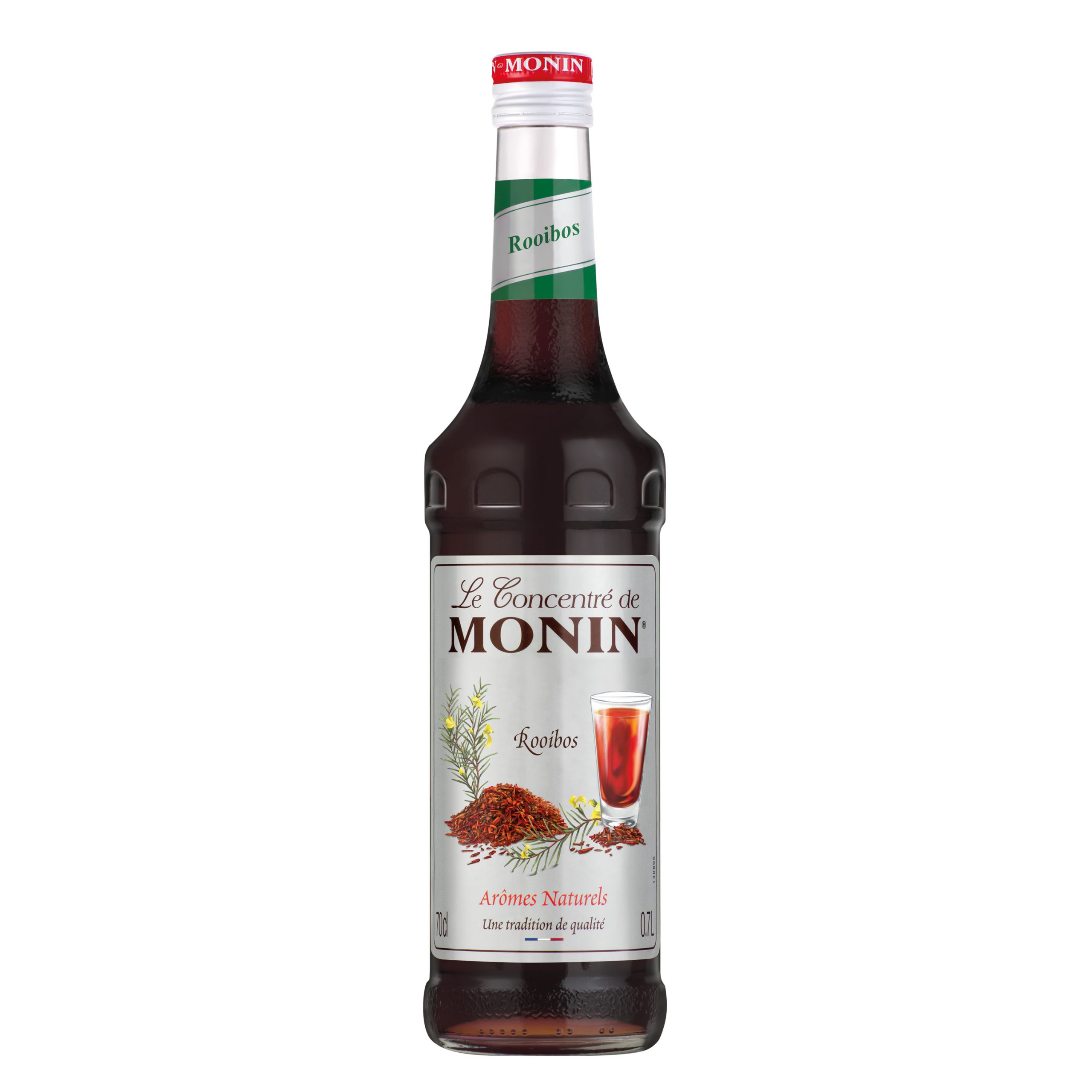 Rooibos to mały krzew uprawiany wyłącznie na południu gór Afryki. W wyniku zaparzenia jego liści powstaje napar zwany również „czerwoną herbatą”. Łagodny aromat herbaty i odrobina słodyczy sprawia, że jest to mieszanka zyskująca na popularności w ostatnich latach. Nie zawiera teiny, więc jest idealną alternatywą dla zwykłych herbat czy kawy. Koncentrat MONIN Rooibos to najlepsza esencja naparu ze staranie dobranych liści, która pozwoli stworzyć mnóstwo oryginalnych receptur i orzeźwiających napoi.